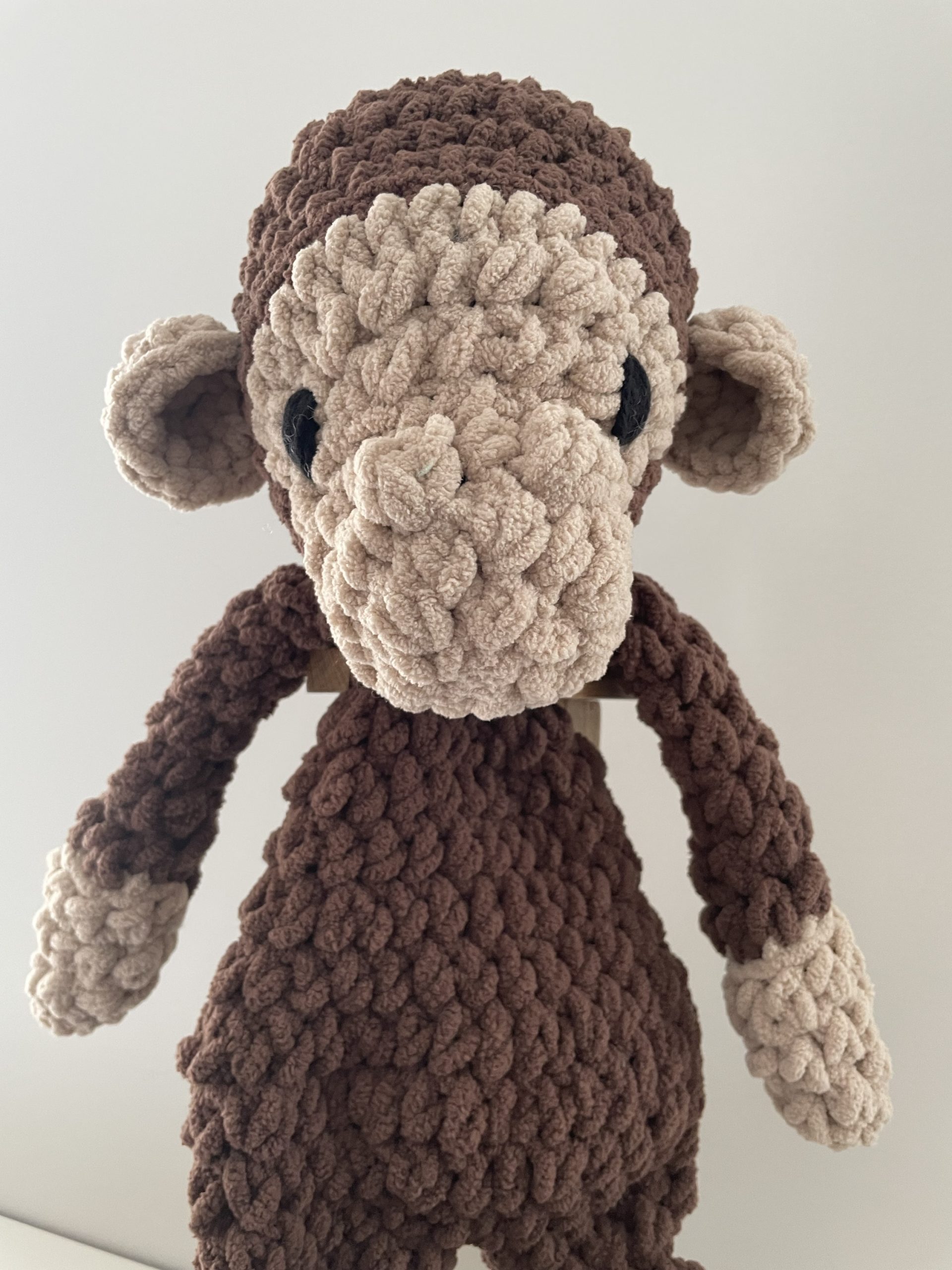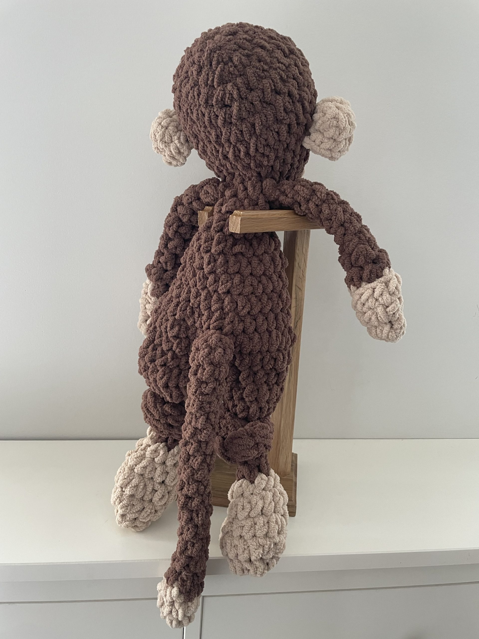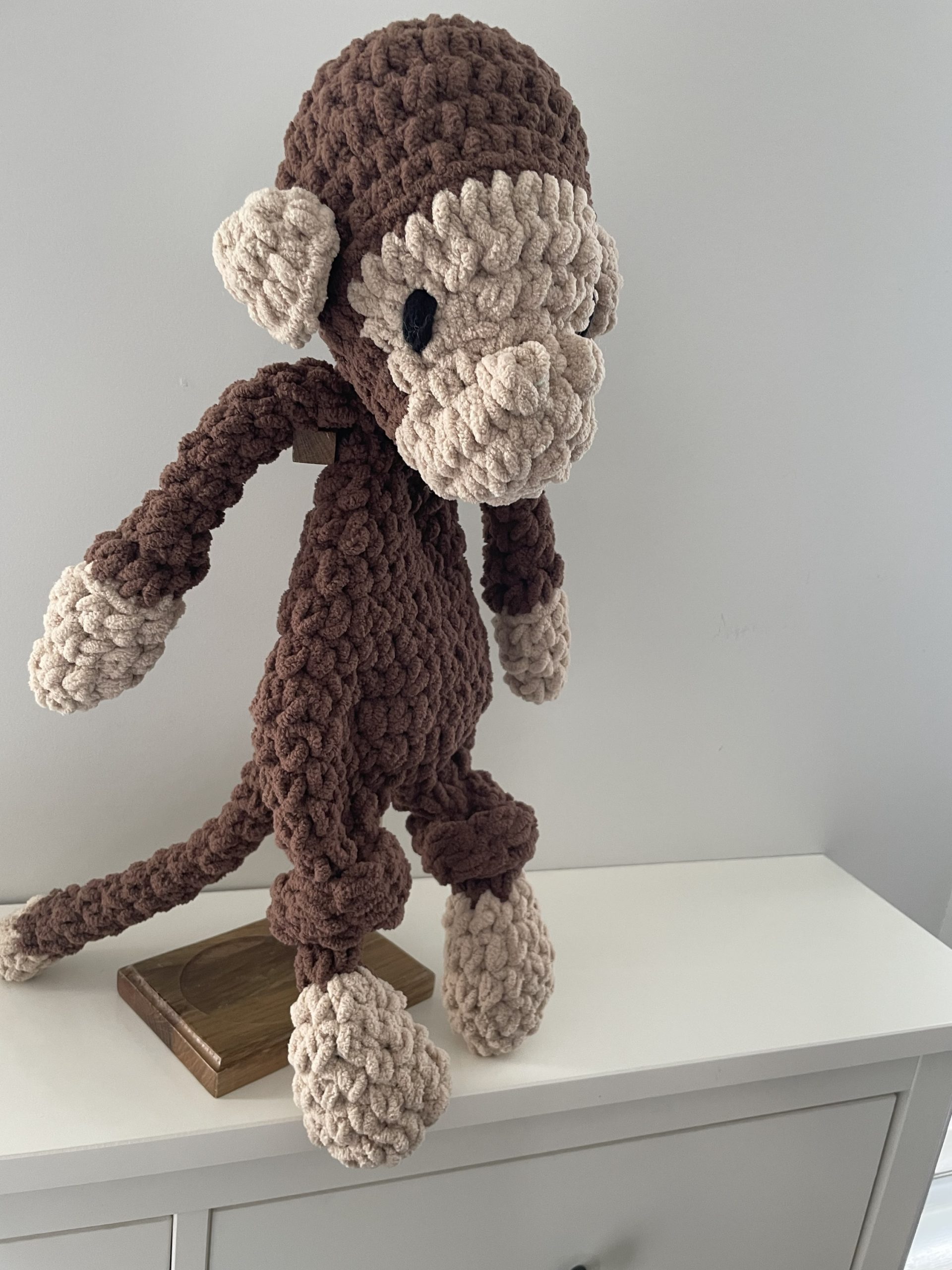 This curious little cutie is made with soft blanket yarn. He measures 18 inches not including his long tail
